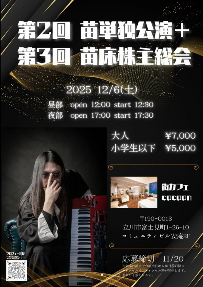 2025年12月6日、TikTok Liveを中心に活動中の広島の鍵盤家 「苗」氏の2ndワンマンライブに、健眞がサプライズ共演しました。